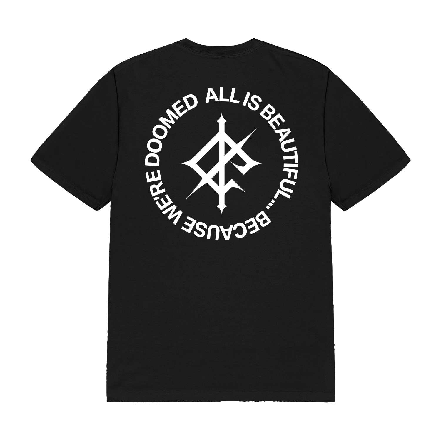 Screen printed front and back on a 100% heavyweight cotton t-shirt with a classic fit.